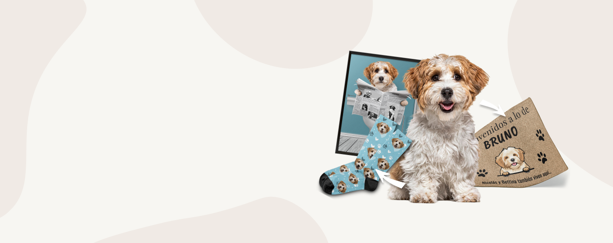 Diseña tu producto como más te guste, eligiendo entre ilustraciones de más de 220 razas o utilizando una foto de tus peluditos.